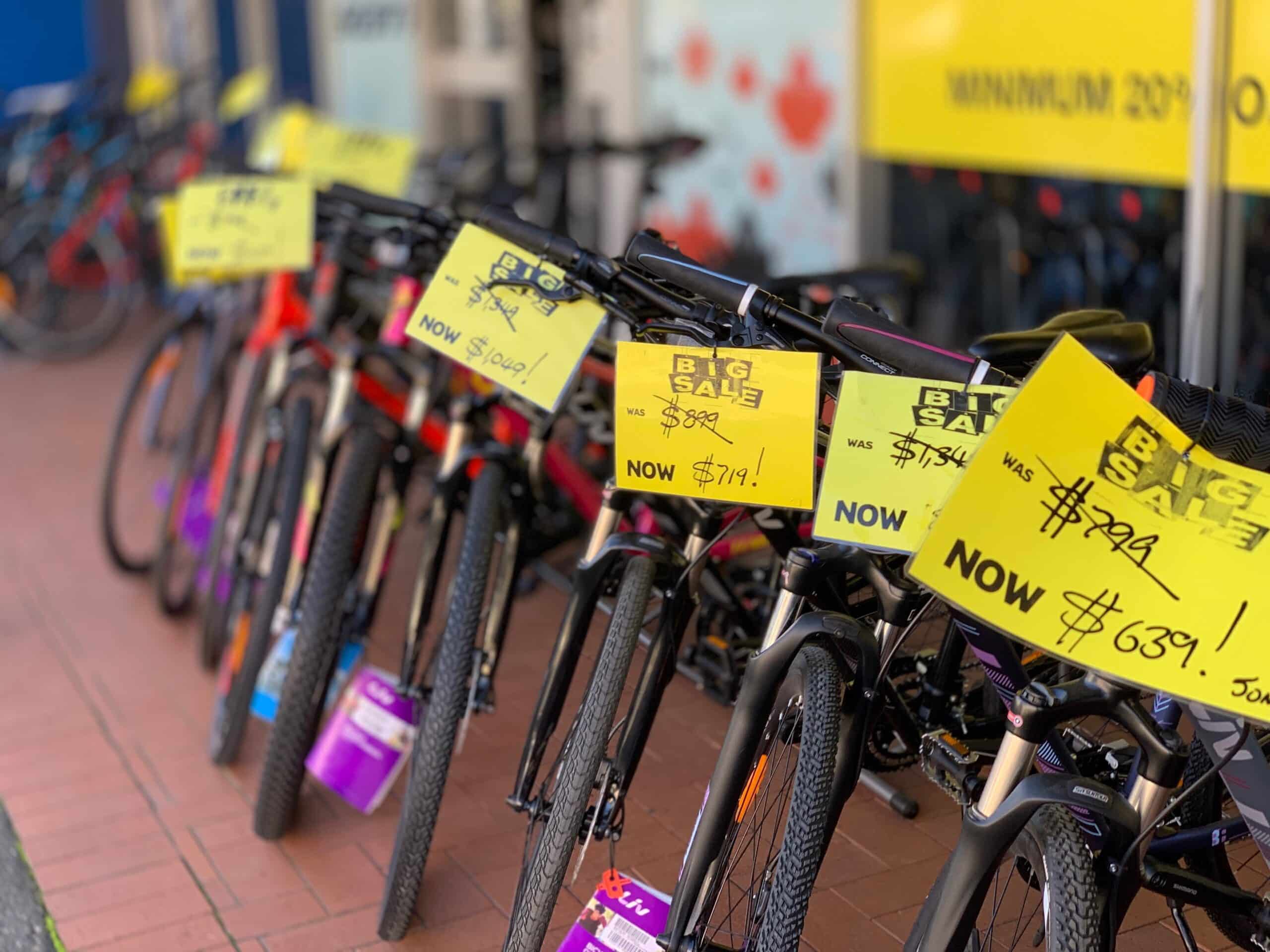 Most of the bikes in store are still our 2019 range, so there is heaps of yellow tags covering the shop.