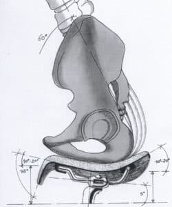 1. The curved shape of the seat:  as a person leans forward to reach their handlebars, the hips tilt forward and as a result human “sit” bones actually poke slightly backwards. This means they will push into the curve of the seat and have something to support them (think of a runner with their heals on the starting blocks). With traditional flat seats more muscles are being tensed up to hold you in position instead of leaning into the seat. Certainly the vast majority of people say they feel like their rump is more relaxed when sitting on the SMP, this curve is the main reason for this.